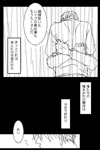 困った裸体が描けないぞ。なんか、ハボが無駄にムキムキで大佐が異常にひょろひょろになってしまう。ひょろひょろ大佐…ぷっ←