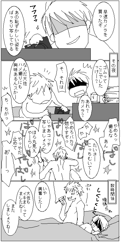 あーしましたしました添い乳(笑)。赤子は逆の方も弄くるんですよねー。いつかノンケもやられるんじゃないでしょうか。うっかり感じたらいいと思います(爆)