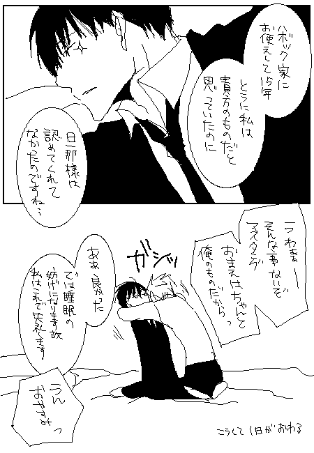 鋼は原作もアニメも終わってしまって今後さらに需要が減っちゃうんだろうけど、それでもこんな素敵なカプがあるんだよ!って宣伝と布教を兼ねて頑張りたいです。そいでもっとみんな描けばいいよ!そしたら私も見る側にいけるから!(問題発言)