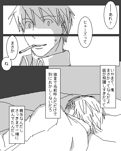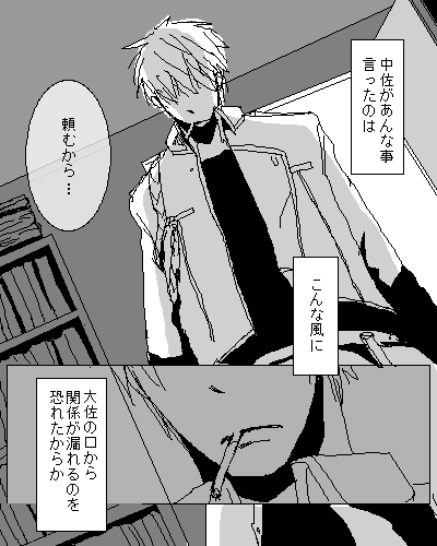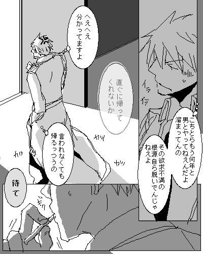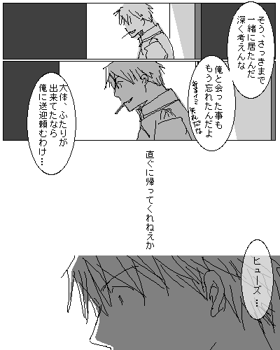 はい、頑張ってますホモハボ。かなり飢えてるはずなんですが頑張ってます(爆)この頃は手に入れたいというより部下でいられるのが幸せって感じなのかもですねーって、ちょー他人事(笑)