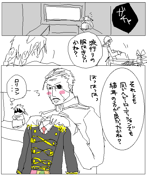 あはは!有難うございますたんぐー。ですです、「ええやないか」はこのシーンでした。自作品を台無しにするのが大好きです(笑)