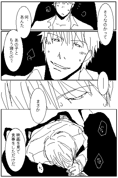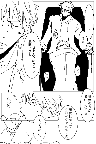そんなわけで(2回目)嘘つき漫画ちまちま描かせて貰ってるわけですが、ついったでも呟いてますが、この後だんだんハボがダメ男になって行きます。ハボをそんなにしたのは増田なので、そうなると彼もダメ男になるんでしょうが、大の男が立派な軍人が恋愛で駄目になっていくって様を妄想するのが楽しくて楽しくて(鬼)